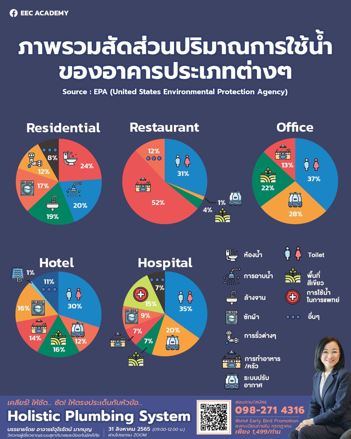 การมองปริมาณการใช้น้ำในภาพรวม (over all) ของอาคารประเภทต่างๆ